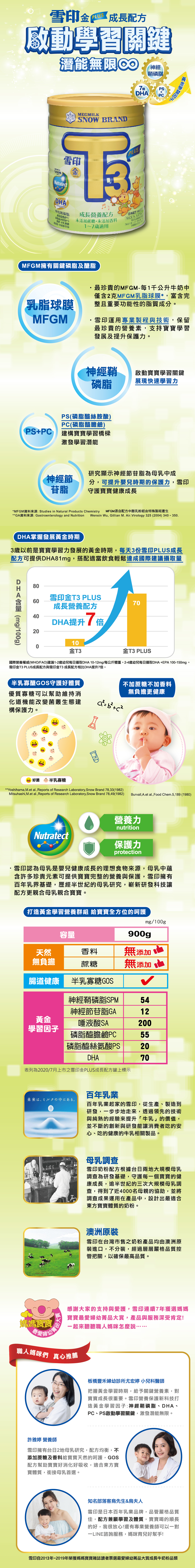 雪印金T3 PLUS成長營養配方(1-7歲適用)900g會員首購搭贈超值好禮 ,每位寶寶限定一次!唯一擁有台日母乳研究,親和母乳營養